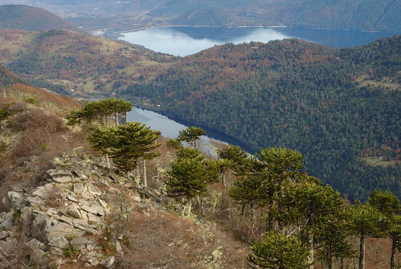 Vista hacia el norte con los volcanes Llaima, Tolhuaca, Lonquimay y la